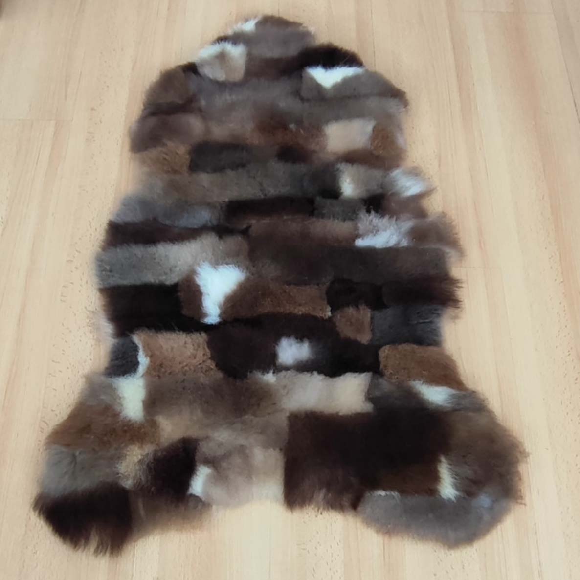 Агнешка кожа направена от зашити парчета агнешка кожа.