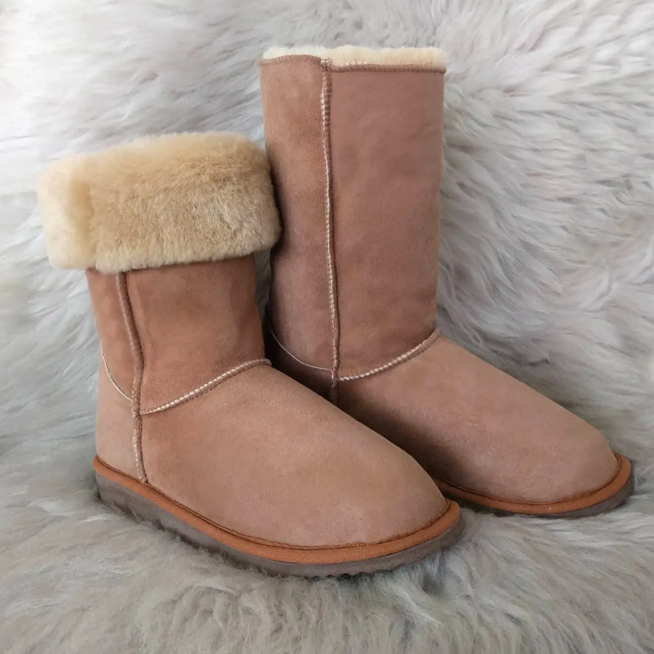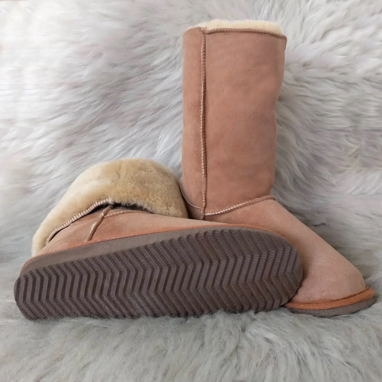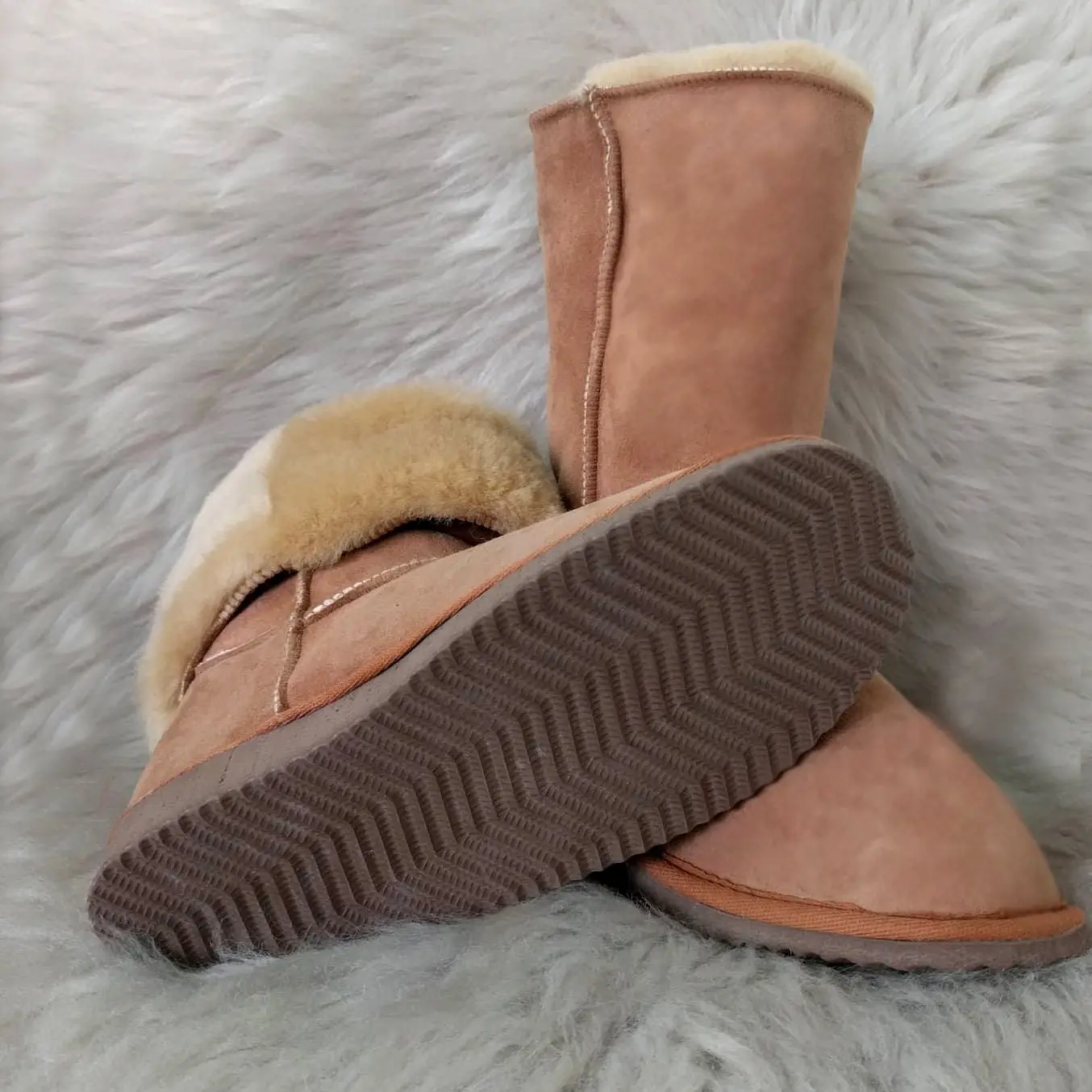 Дамските ботуши са изцяло изработени от агнешка кожа и с ходило от евапрен, което не пропуска вода и не се пързаля. Използваните суровини и технологии в производствения процес гарантират приятен и напълно безвреден допир с кожата. Носенето на ботуши от естествена агнешка кожа не позволява изпотяването на стъпалото и поддържа естествената човешка температура.