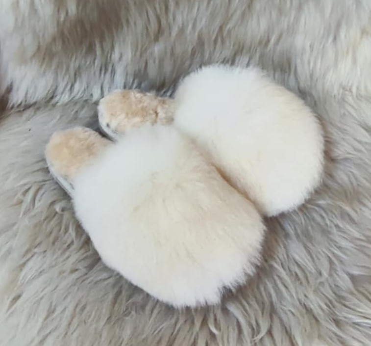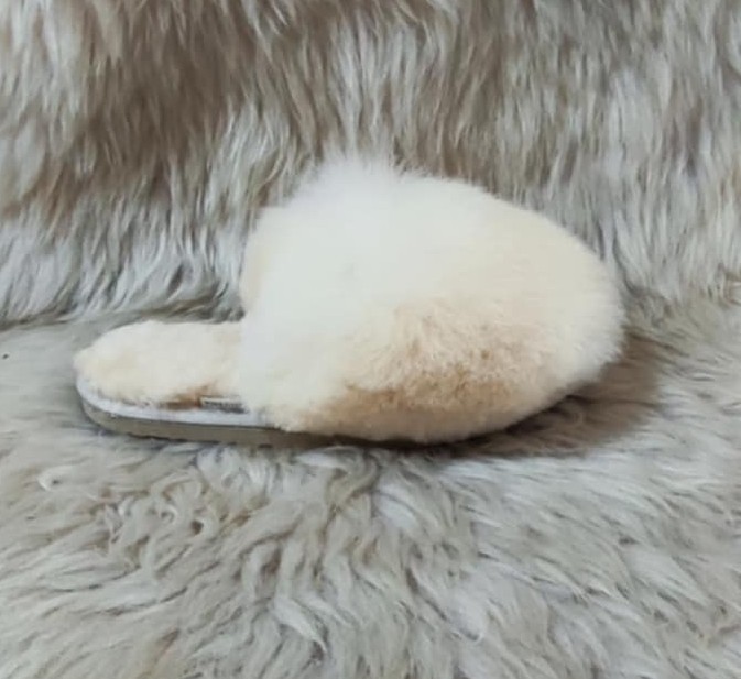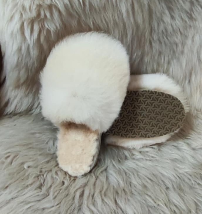 Дамски чехли с отворени пръсти, изцяло изработени от агнешка кожа и с ходило от евапрен, което не пропуска вода и не се пързаля. Използваните суровини и технологии в производствения процес гарантират приятен и напълно безвреден допир с кожата. Носенето на чехли от естествена агнешка кожа не позволява изпотяването на стъпалото и поддържа естествената човешка температура.