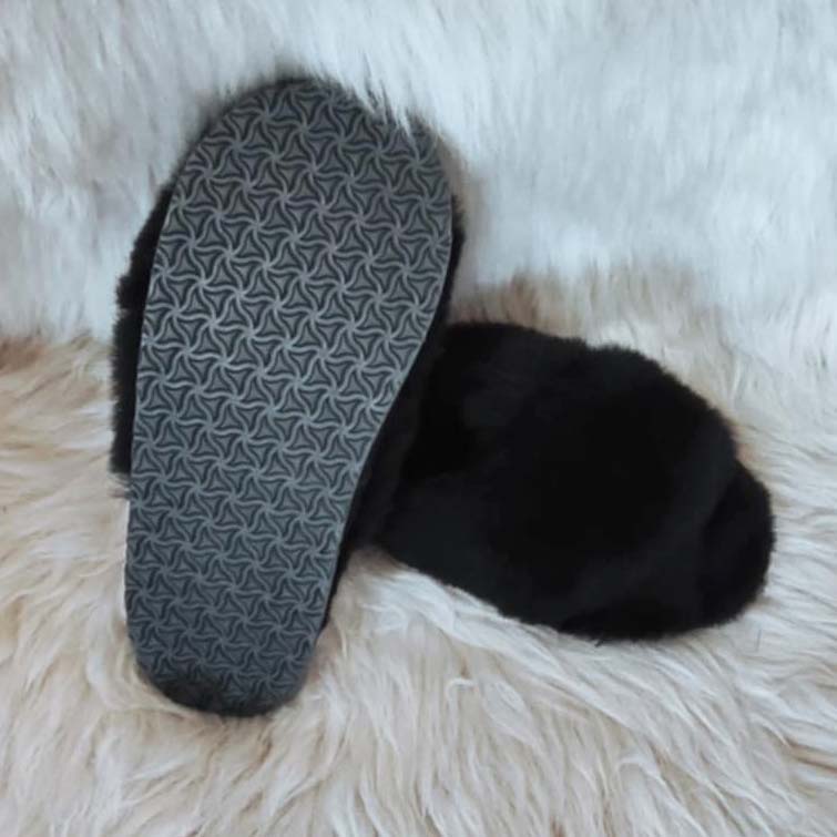 Дамски чехли с отворени пръсти, изцяло изработени от агнешка кожа и с ходило от евапрен, което не пропуска вода и не се пързаля. Използваните суровини и технологии в производствения процес гарантират приятен и напълно безвреден допир с кожата. Носенето на чехли от естествена агнешка кожа не позволява изпотяването на стъпалото и поддържа естествената човешка температура.