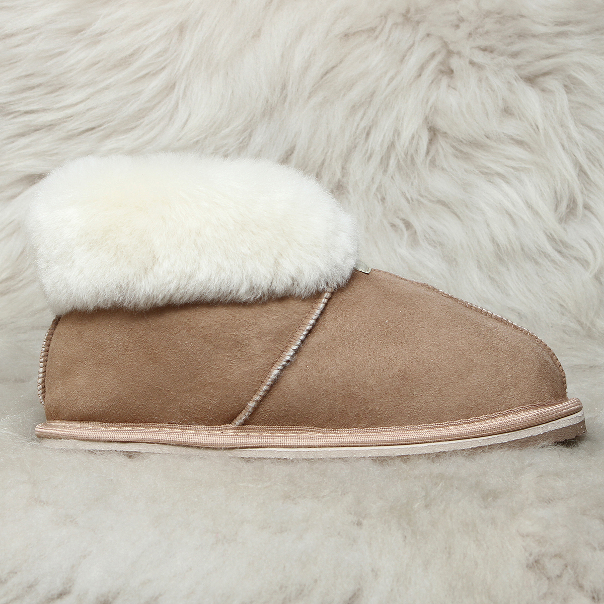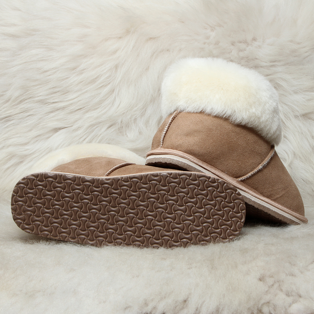 Дамските пантофи са изцяло изработени от агнешка кожа и с ходило от евапрен, което не пропуска вода и не се пързаля. Използваните суровини и технологии в производствения процес гарантират приятен и напълно безвреден допир с кожата. Носенето на пантофи от естествена агнешка кожа не позволява изпотяването на стъпалото и поддържа естествената човешка температура. Изключително удобен класически модел пантофи.