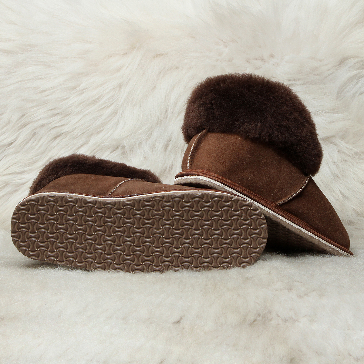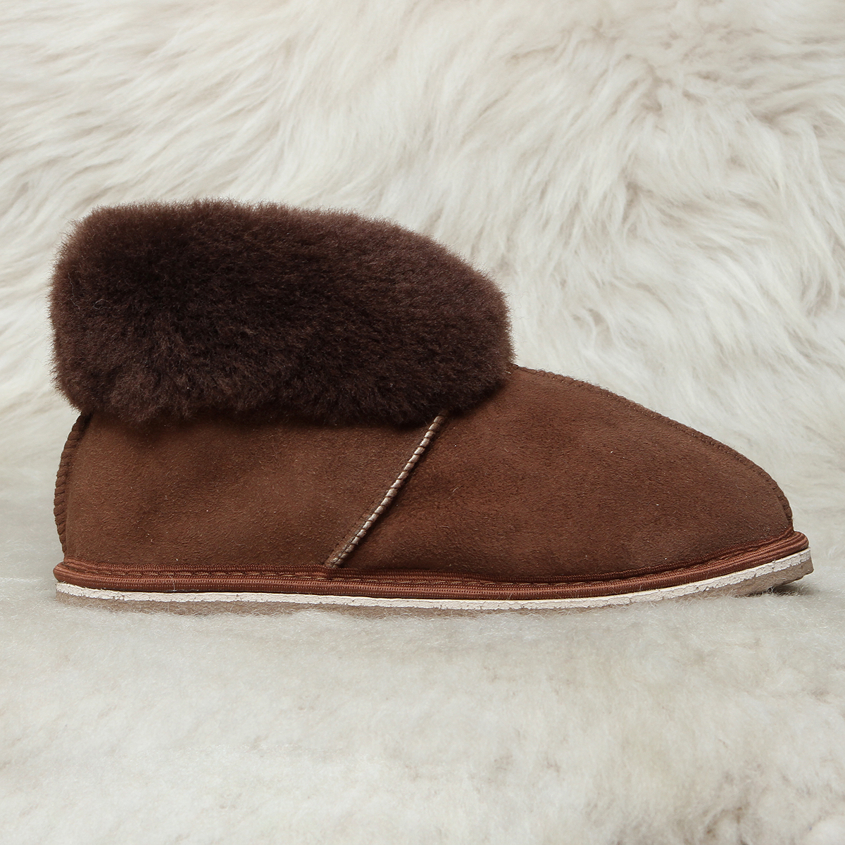 Дамските пантофи са изцяло изработени от агнешка кожа и с ходило от евапрен, което не пропуска вода и не се пързаля. Използваните суровини и технологии в производствения процес гарантират приятен и напълно безвреден допир с кожата. Носенето на пантофи от естествена агнешка кожа не позволява изпотяването на стъпалото и поддържа естествената човешка температура. Изключително удобен класически модел пантофи.