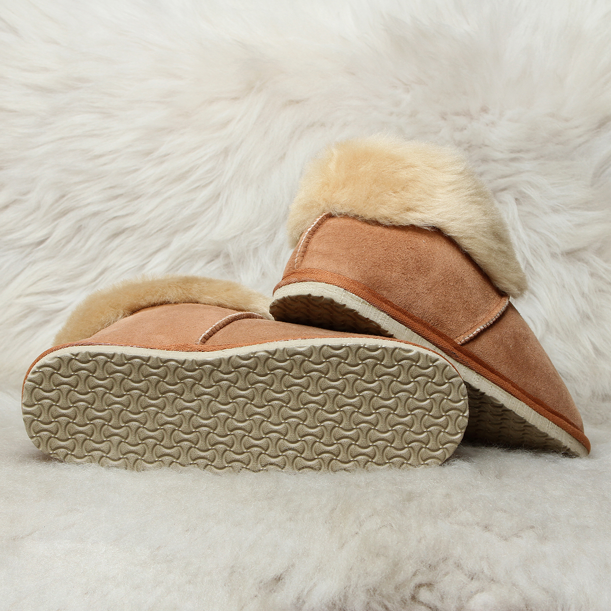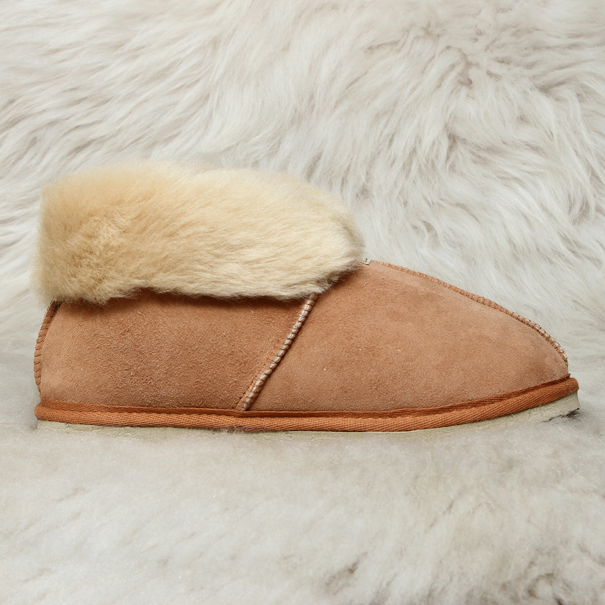 Дамските пантофи са изцяло изработени от агнешка кожа и с ходило от евапрен, което не пропуска вода и не се пързаля. Използваните суровини и технологии в производствения процес гарантират приятен и напълно безвреден допир с кожата. Носенето на пантофи от естествена агнешка кожа не позволява изпотяването на стъпалото и поддържа естествената човешка температура. Изключително удобен класически модел пантофи.