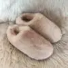 Дамските полупантофи са изцяло изработени от агнешка кожа отвън и отвътре.Ходилото е от евапрен, което не пропуска вода и не се пързаля. Използваните суровини и технологии в производствения процес гарантират приятен и напълно безвреден допир с кожата. Носенето на чехли от естествена агнешка кожа не позволява изпотяването на стъпалото и поддържа естествената човешка температура. Изключително удобни, зад петата моделът е повдигнат и затова го наричаме полупантоф.