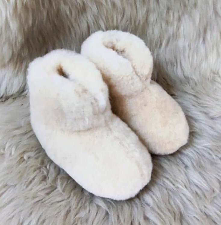 Детските пантофи са изцяло изработени от агнешка кожа отвън и отвътре, с ходило от евапрен, което не пропуска вода и не се пързаля. Материалът, от който са направени, предлага максимално удобство на стъпалото. Използваните суровини и технологии в производствения процес гарантират приятен и напълно безвреден допир с кожата.