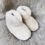 Детските чехли са изцяло изработени от агнешка кожа и с ходило от евапрен, което не пропуска вода и не се пързаля. Използваните суровини и технологии в производствения процес гарантират приятен и напълно безвреден допир с кожата. Носенето на чехли от естествена агнешка кожа не позволява изпотяването на стъпалото и поддържа естествената човешка температура. Изключително удобни за обуване и събуване,за тичане и детски игри.