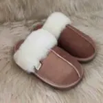Детски чехли с отворени пръсти, изцяло изработени от агнешка кожа и с ходило от евапрен, което не пропуска вода и не се пързаля. Използваните суровини и технологии в производствения процес гарантират приятен и напълно безвреден допир с кожата. Носенето на чехли от естествена агнешка кожа не позволява изпотяването на стъпалото и поддържа естествената човешка температура.