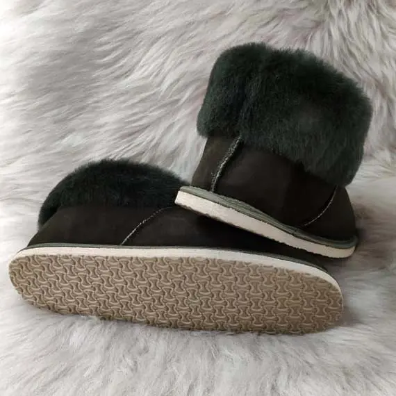Мъжките пантофи са изцяло изработени от агнешка кожа и с ходило от евапрен, което не пропуска вода и не се пързаля. Използваните суровини и технологии в производствения процес гарантират приятен и напълно безвреден допир с кожата. Носенето на чехли от естествена агнешка кожа не позволява изпотяването на стъпалото и поддържа естествената човешка температура.