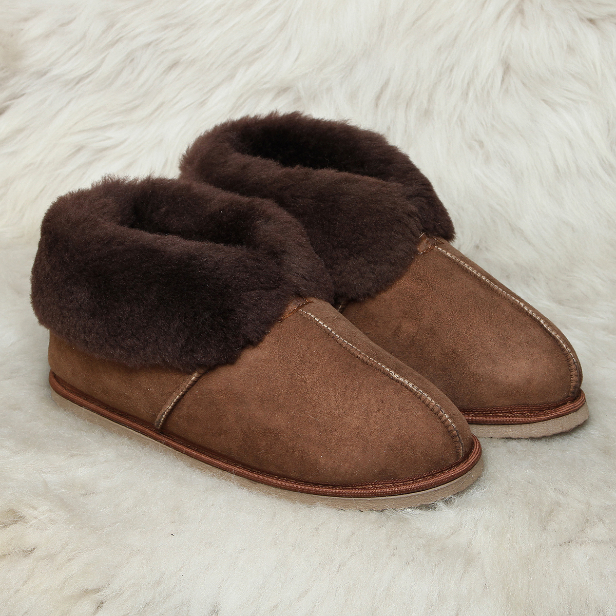 Мъжките пантофи са изцяло изработени от агнешка кожа и с ходило от евапрен, което не пропуска вода и не се пързаля. Използваните суровини и технологии в производствения процес гарантират приятен и напълно безвреден допир с кожата. Носенето на чехли от естествена агнешка кожа не позволява изпотяването на стъпалото и поддържа естествената човешка температура.