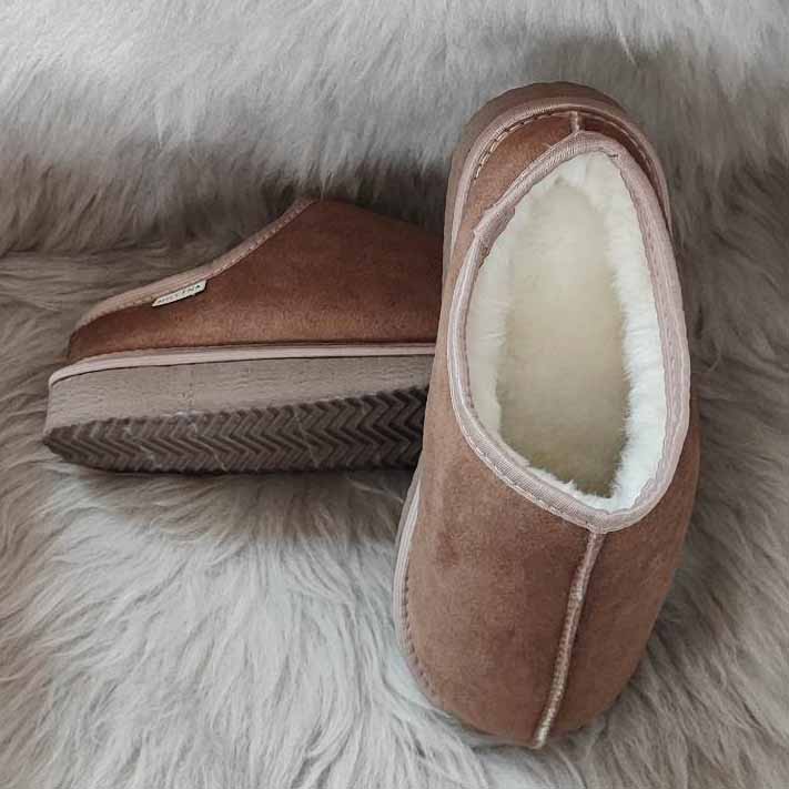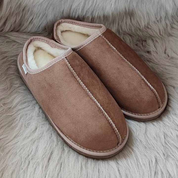 Мъжките полупантофи са изцяло изработени от агнешка кожа и с ходило от евапрен, което не пропуска вода и не се пързаля. Използваните суровини и технологии в производствения процес гарантират приятен и напълно безвреден допир с кожата. Носенето на чехли от естествена агнешка кожа не позволява изпотяването на стъпалото и поддържа естествената човешка температура.