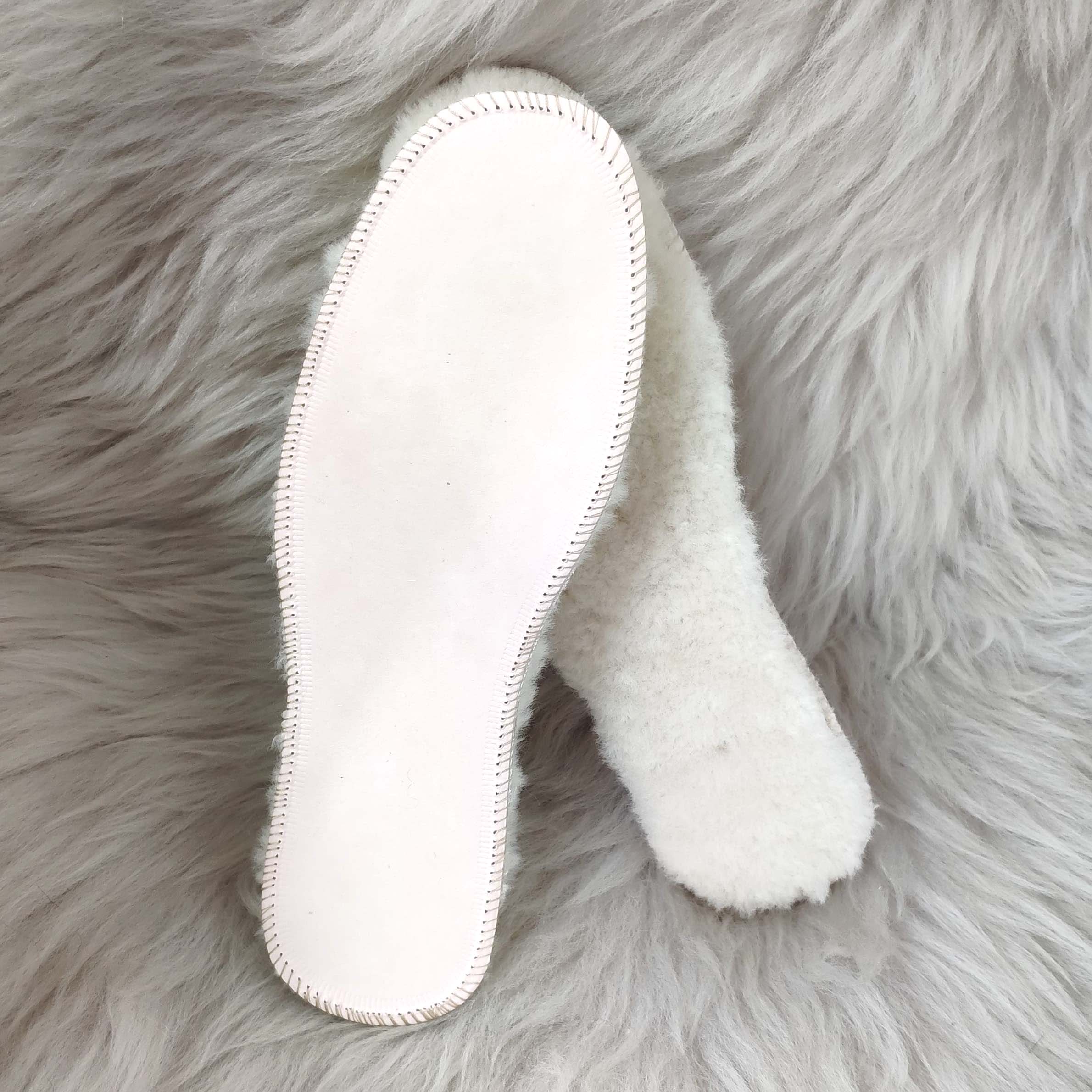 Тъмните стелки са направени от натурална небоядисана агнешка кожа.