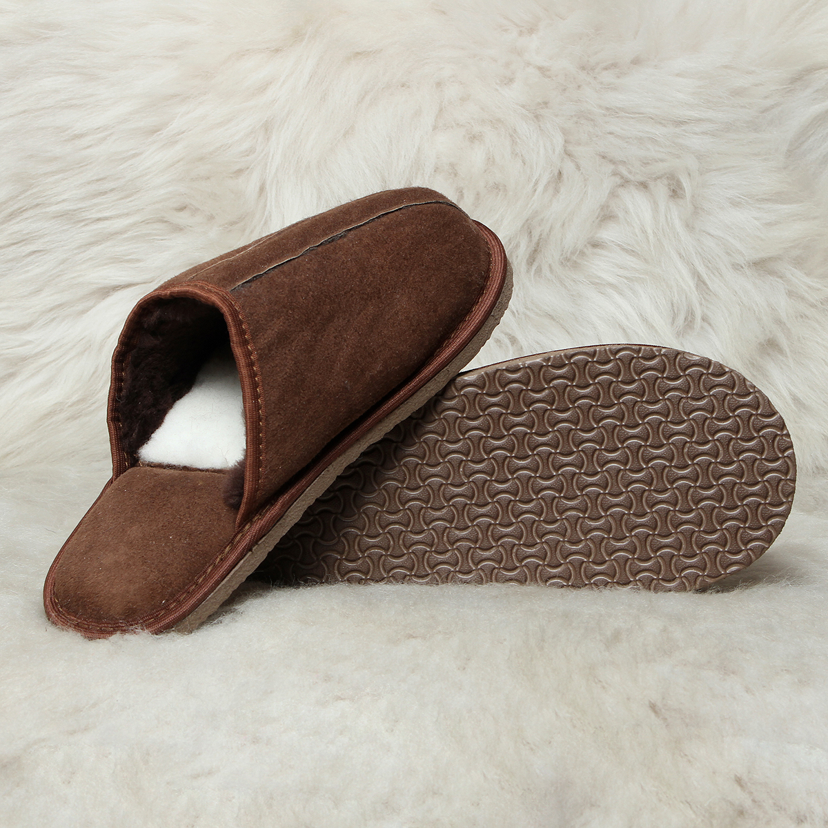 Мъжките чехли са изцяло изработени от агнешка кожа и с ходило от евапрен, което не пропуска вода и не се пързаля. Използваните суровини и технологии в производствения процес гарантират приятен и напълно безвреден допир с кожата. Носенето на чехли от естествена агнешка кожа не позволява изпотяването на стъпалото и поддържа естествената човешка температура. Изключително удобен класически модел чехли.