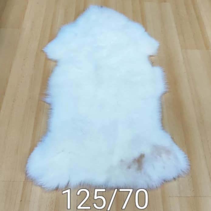 Натурална агнешка кожа, небоядисвана с естествени шарки. Обработена е с най-безвредните и качествени материали, напълно подходяща за килим за бебета и малки деца.